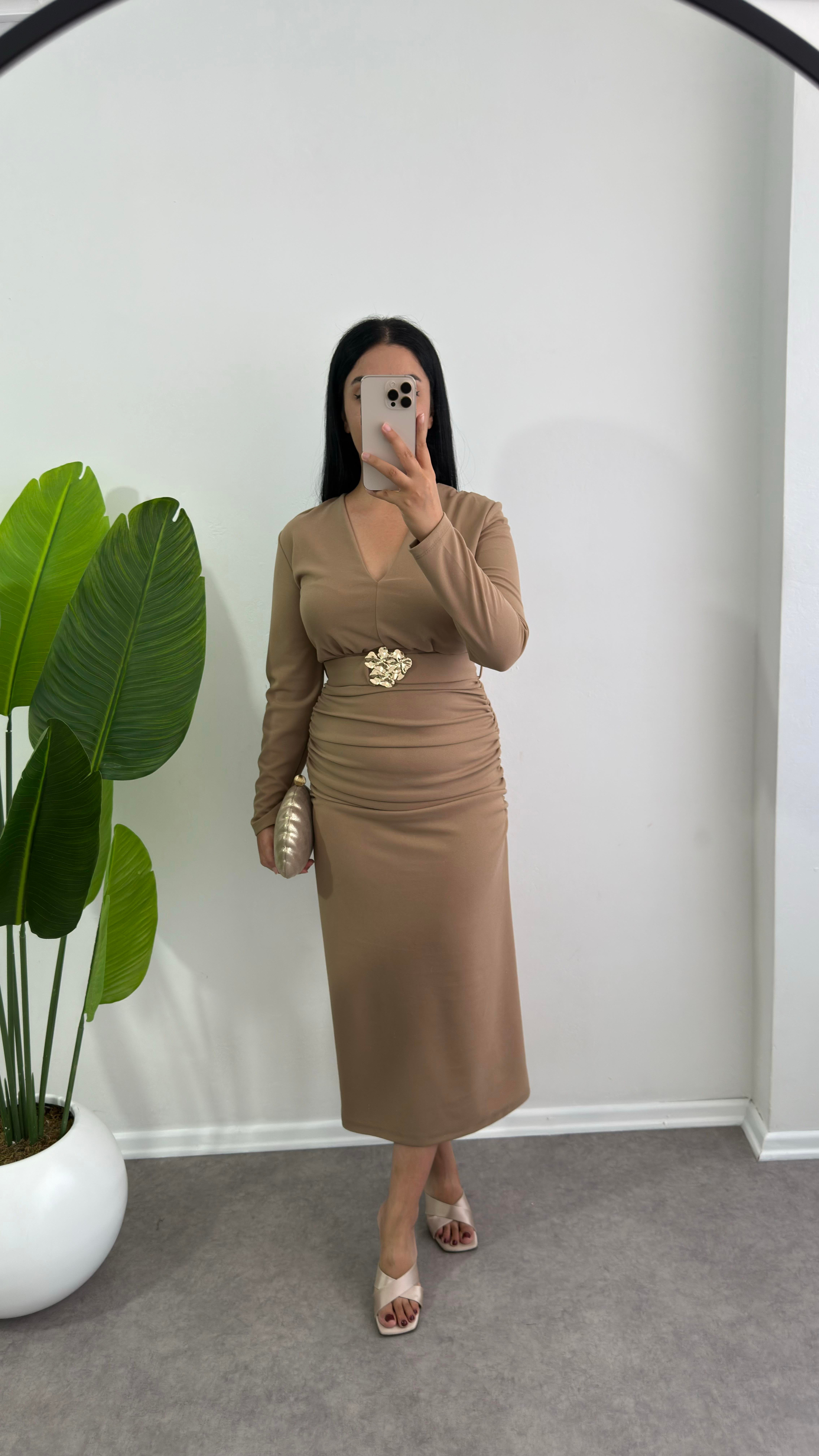 V yaka örme krep kumaş çiçek detaylı tokalı gold kemer manken 69 kilo 1.70 boy kargo beden kullandı