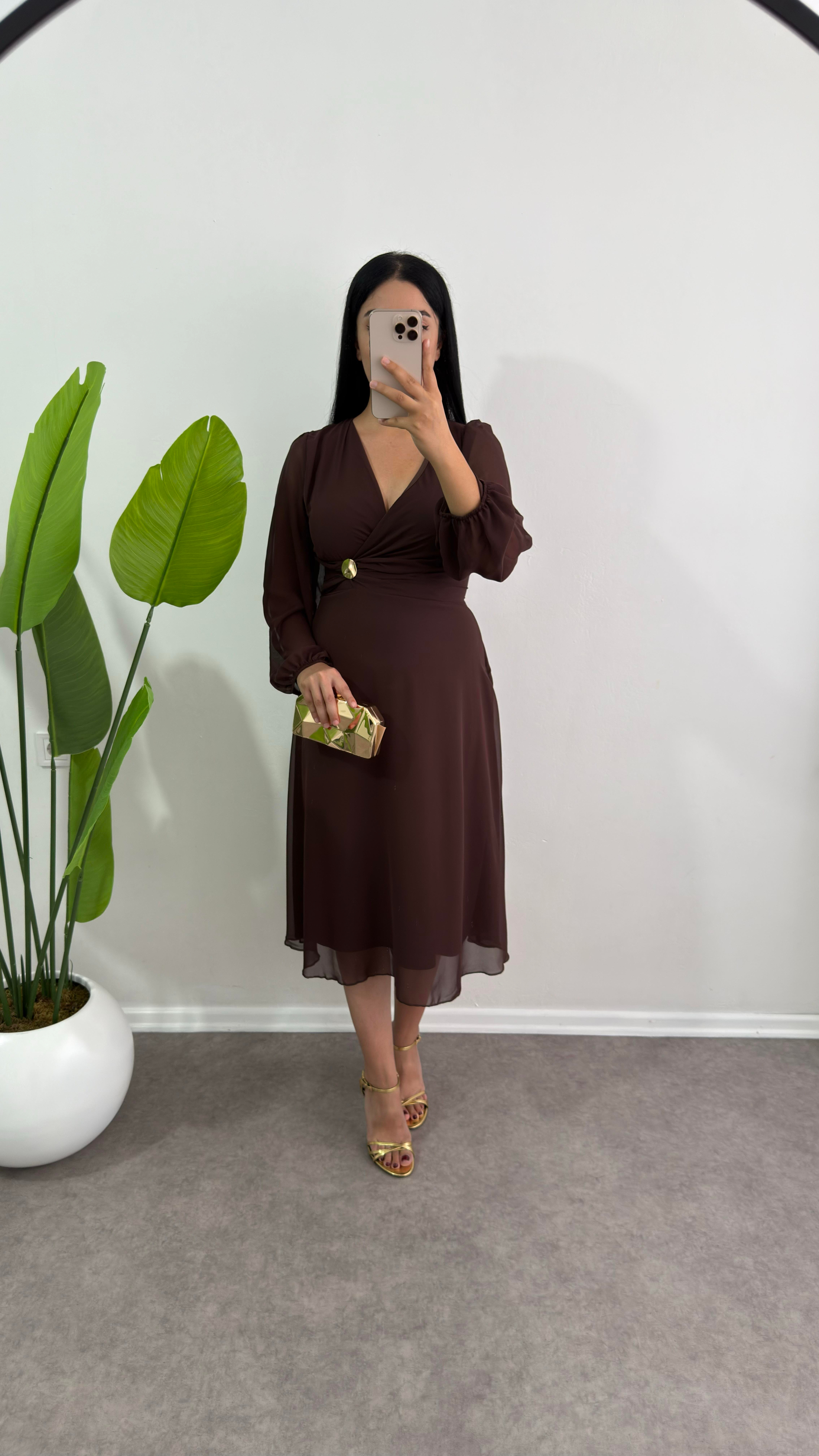 Nare Kahverengi şifon elbise
