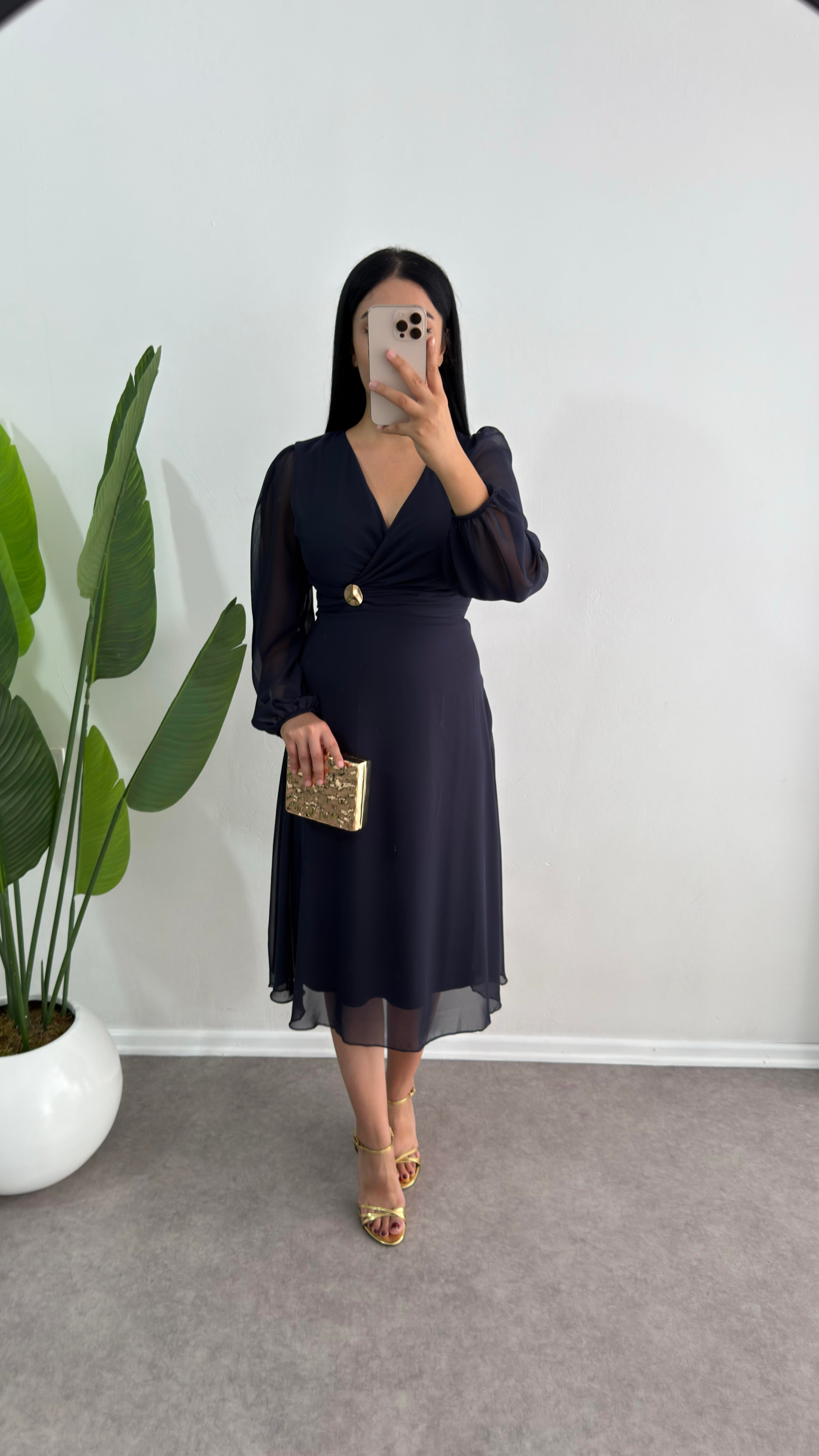 Ve yaka yandan broşlu şifon kumaş içi astarlı uzun kol arkası full kapalı manken 69 kg 170 boy large beden kullandı yandan fermuarlıdır tam kalıptır Arap bedensiniz bir büyük beden tercih edebilirsiniz