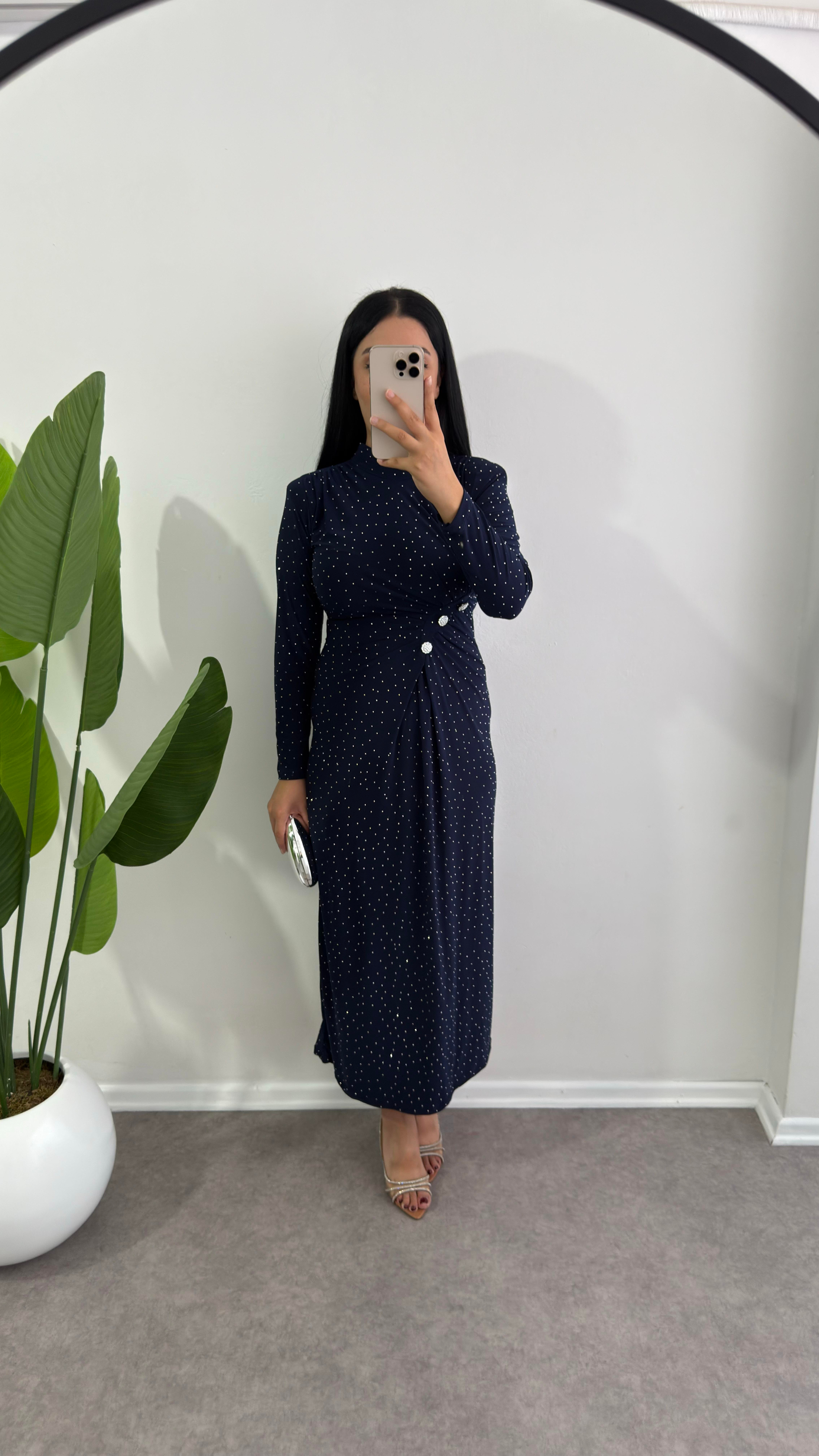 Taşlı dik yaka bel kısmında 3 düğme detaylı sendy kumaş likralı esnek kumaş vatkalı arkadan fermuarlı manken 69 kg 170 boy L kullandı
