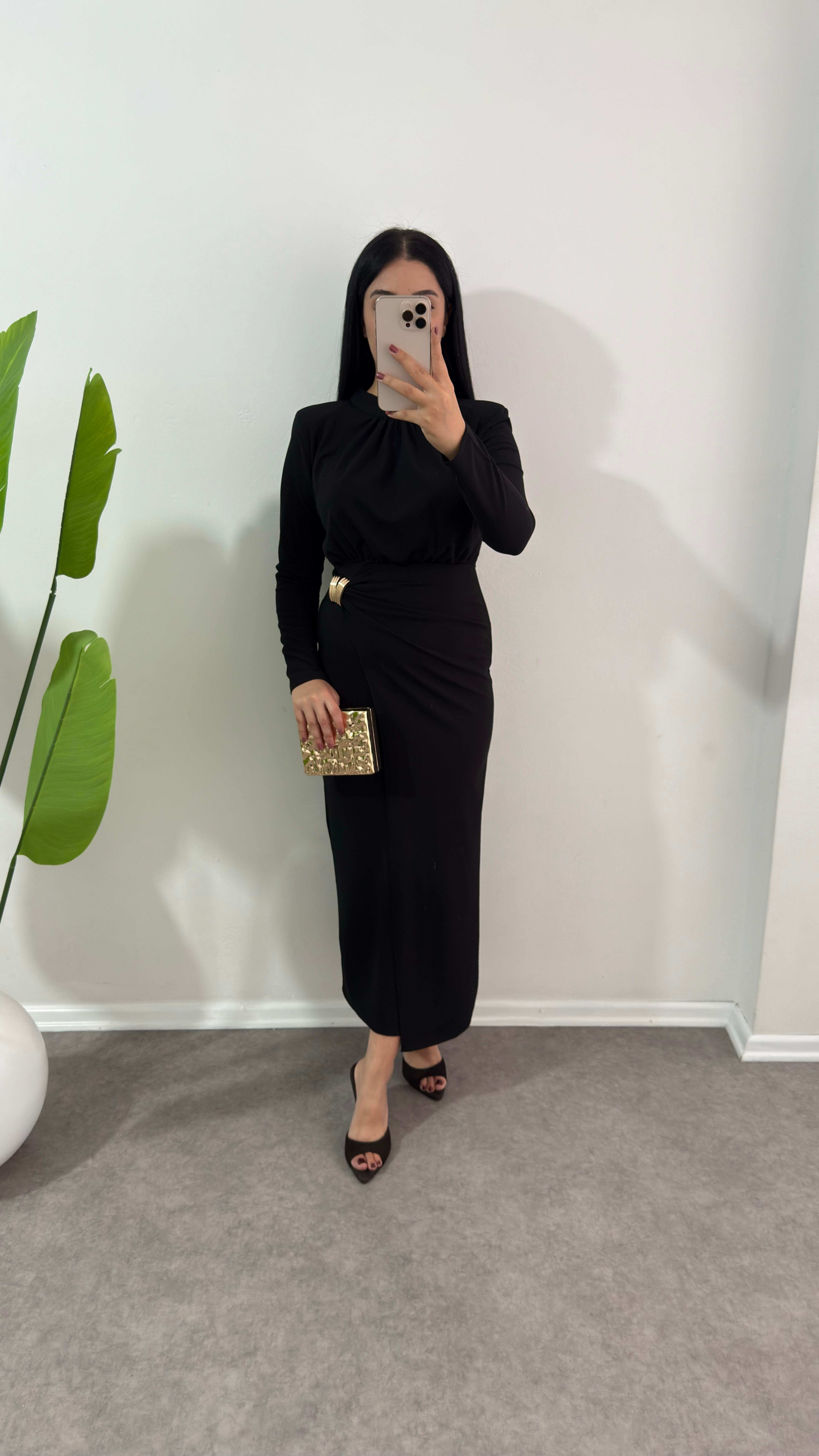 Siyah sever krep elbise
